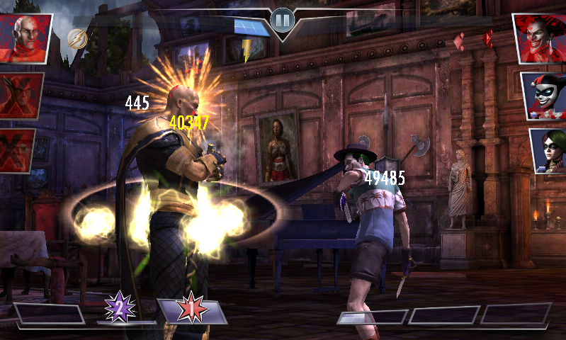- RED/BOSS version of him from Bonus Battle 6 in Standard Battle has a special that resembles the "Lightning Bomb" from the console game; furthermore, only him, along with Doomsday/Regime and Sinestro/Regime have an additional Special Attack unusable by players.