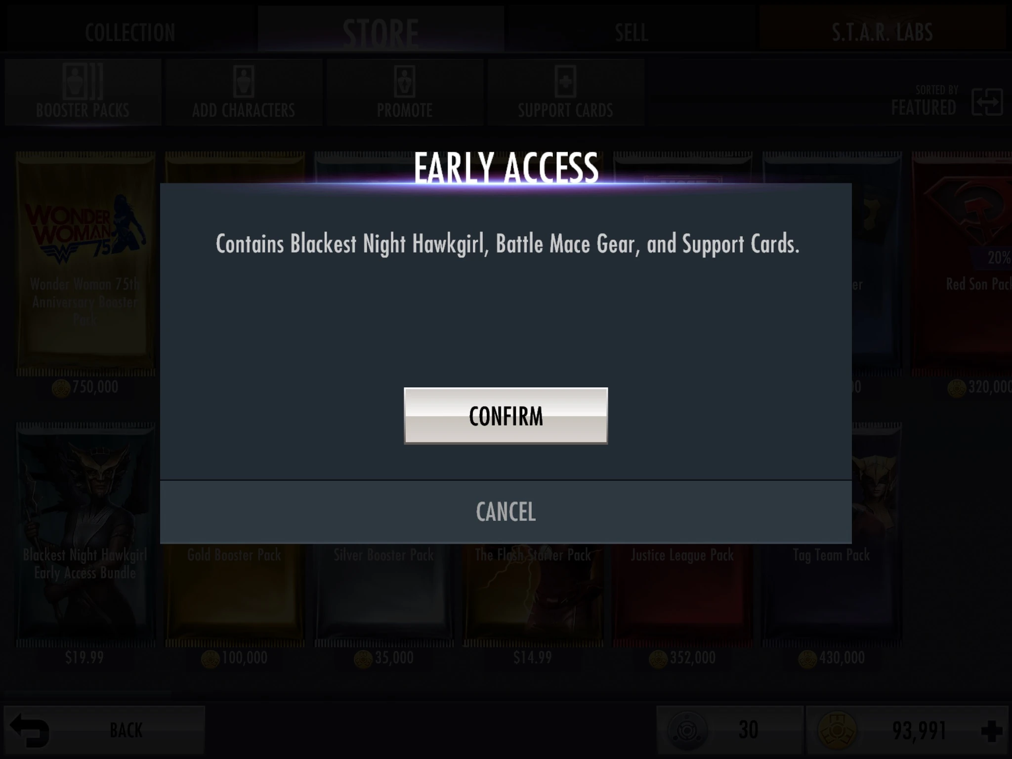 The Blackest Night Hawkgirl Pack grants early access to a copy of Hawkgirl/Blackest Night, her Nth Battle Mace gear, along with all of her support cards for $19.99.