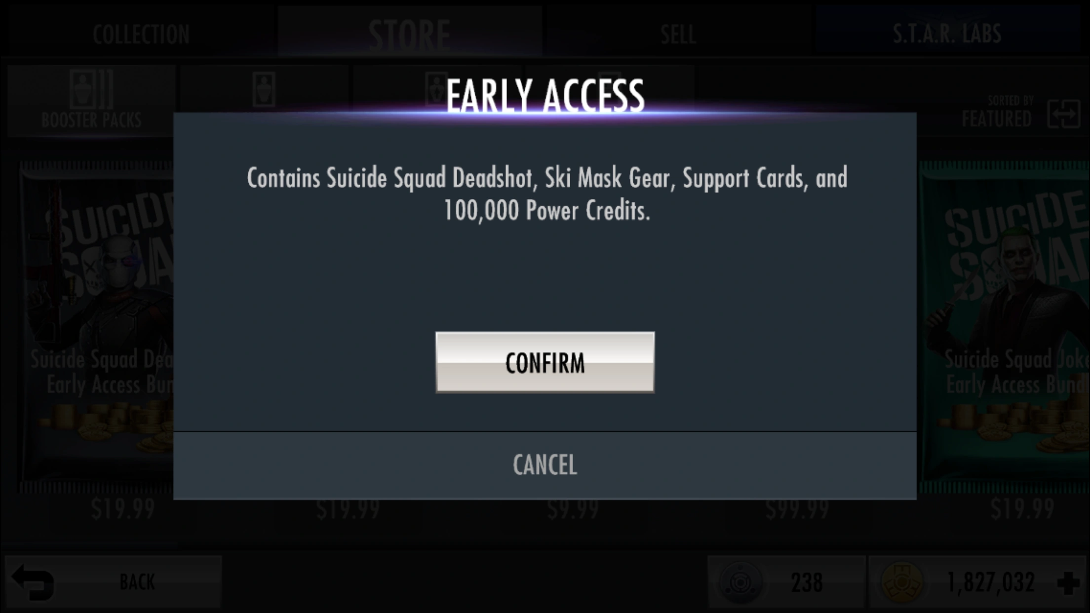 The Suicide Squad Deadshot Early Access Bundle grants early access to Deadshot/Suicide Squad, along with his character gear, Ski Mask, all of Deadshot's Support cards and 100,000 Power Credits.